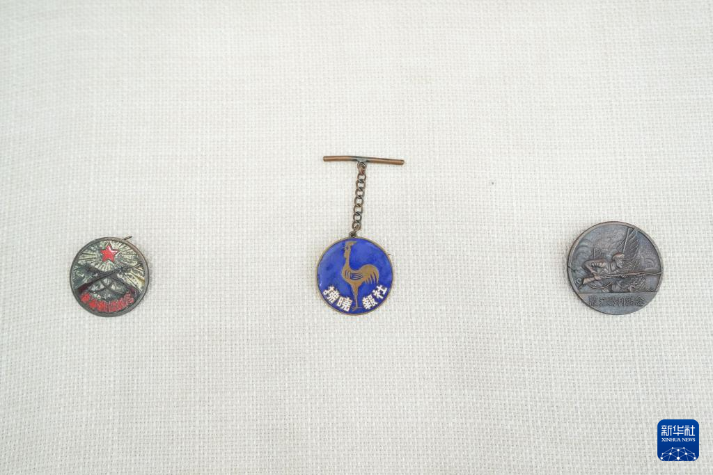这是在仪式现场展出的徽章(5月26日摄)。