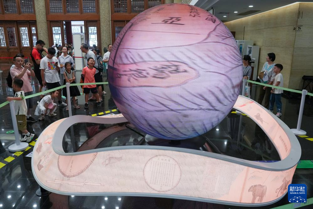 7月10日,观众在南京博物院观看展览的球形视频介绍。