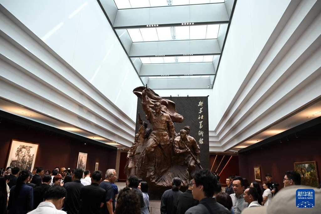 新华社北京8月26日电 由新华通讯社主办的“国社之镜·世纪光影之人民必胜”艺术展26日在北京国家金融信息大厦开展。展览共分为五个篇章,以中国战场为主视角,通过140余张珍贵历史照片、抗战文物和十余件著名艺术家的绘画及雕塑作品,铺展出一幅气壮山河的抗战全景图。
