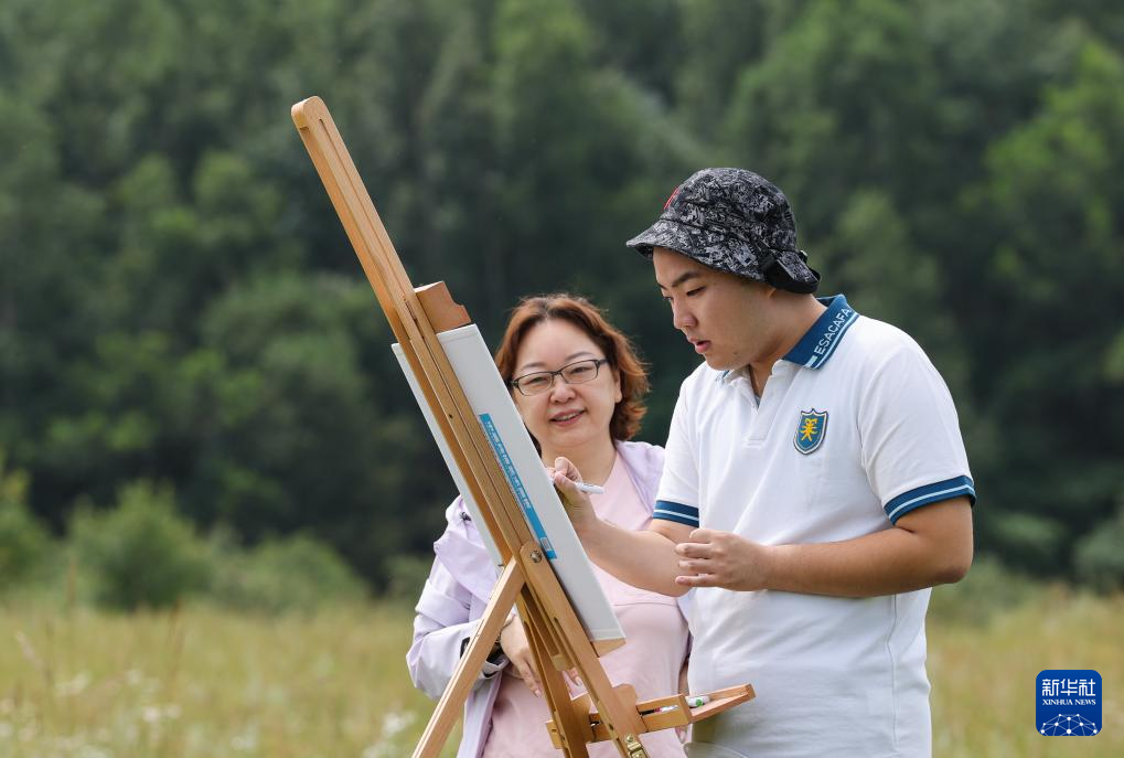 8月18日,妈妈陪伴王剑书在河北承德御道口草原写生。
