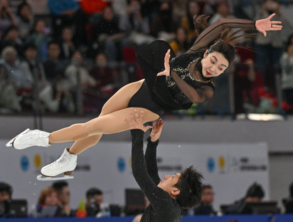 10月24日,隋文静(上)/韩聪在比赛中。新华社记者 陈诚 摄