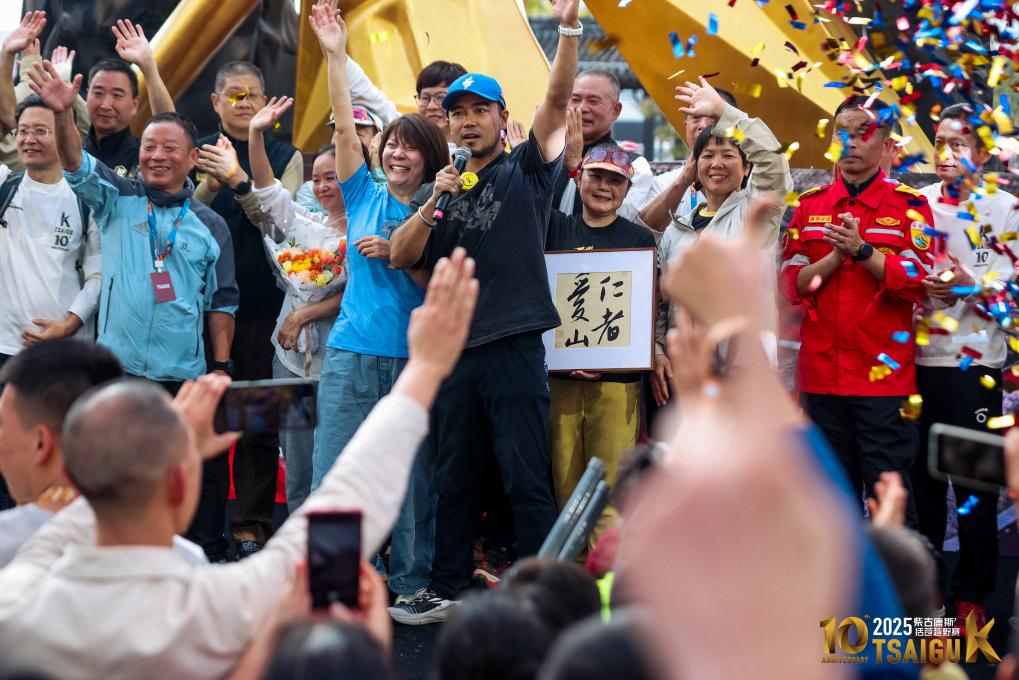 柴古唐斯括苍越野赛在2015年由越野跑爱好者创办,历经十余年经营,已经成为临海的一张名片,当地百姓也深度融入其中。男子105公里组亚军、名将蒙光富在冲线后忍不住立刻拿起话筒,感谢临海群众一路给他加油打气。