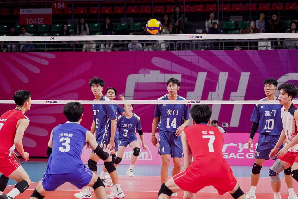 新华社广州11月4日电(记者李琳海)4日,第十五届全国运动会排球项目(男子20岁以下组)比赛迎来第四个比赛日。当日下午在广州体育学院亚运篮球馆举行的B组小组赛中,澳门队以0:3负于河北队。