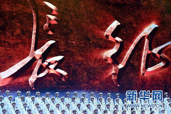 10月19日,紀(jì)念紅軍長(zhǎng)征勝利80周年文藝晚會(huì)《永遠(yuǎn)的長(zhǎng)征》在北京人民大會(huì)堂舉行。 新華社記者 李濤 攝