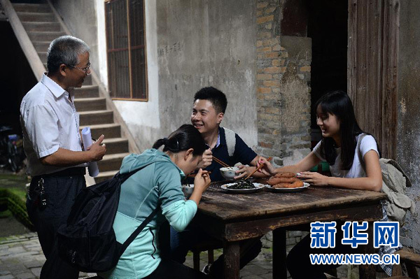 在江西于都縣劉次垣民居內(nèi),三位主播在體驗(yàn)“吃紅軍飯”(9月16日攝)。 10月13日起,新華社為紀(jì)念紅軍長(zhǎng)征勝利80周年推出的系列網(wǎng)絡(luò)直播《紅色追尋——三個(gè)年輕人的長(zhǎng)征路》精編版視頻將在全國(guó)各主要新媒體發(fā)布端和民航、鐵路、公交、戶外大屏等發(fā)布平臺(tái)上線。新華社記者 萬(wàn)象 攝