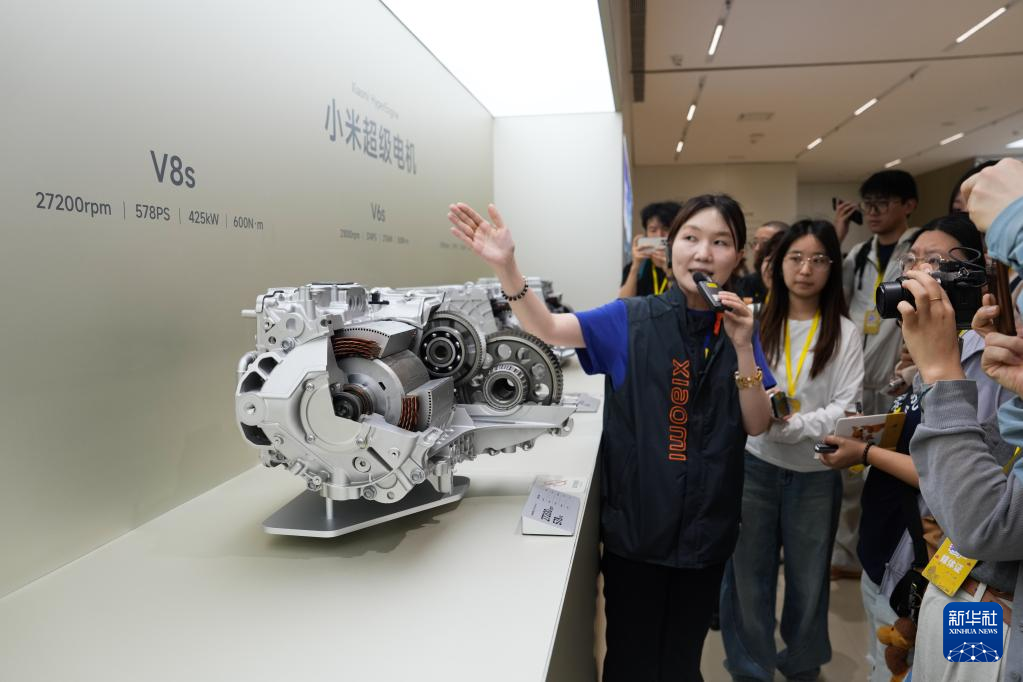 6月16日,参观者在北京小米汽车工厂的科技展厅了解小米超级电机。
