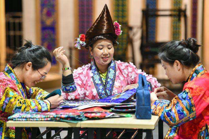 高興之余,我也面臨新挑戰(zhàn)。面對苗繡傳承、傳播青黃不接的窘境,我意識到自己有責(zé)任和義務(wù)把苗繡等苗族文化傳承下去、傳播出去。我想,我一個人的力量太小,把技藝傳給姐妹們也只能影響幾十、幾百人,如果學(xué)校、社會都參與進來,我們下一代就會有更多的熱情和意識主動去學(xué)習(xí)、傳承民族文化。