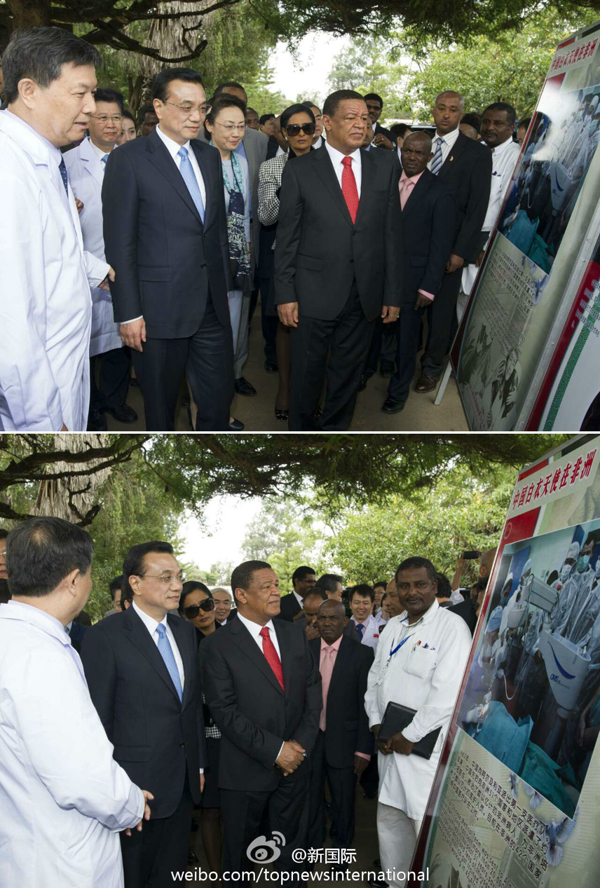 ??? 李克強(qiáng)6日在埃塞總統(tǒng)陪同下,看望“光明行”埃塞受益者。他親手為兩名接受中國醫(yī)生手術(shù)的埃塞白內(nèi)障患者拆開紗布,并向他們獻(xiàn)上鮮花祝賀他們重見光明。他說,中非是患難與共的兄弟,中國將盡所能幫助更多埃塞患者恢復(fù)視力,希望中埃、中非人民將攜手走向光明的未來。