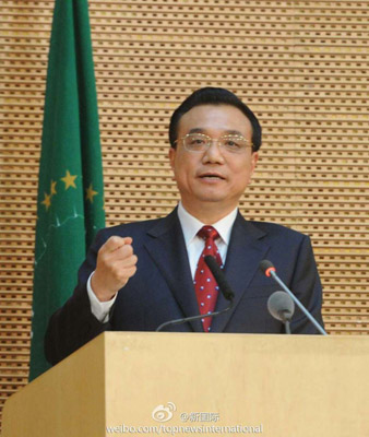 新華網(wǎng)北京5月6日電 據(jù)新華社“新國際”微博報道,李克強總理5日在非盟會議中心演講時談到:中國愿意毫無保留地與非洲共享先進(jìn)技術(shù)與發(fā)展經(jīng)驗,不斷加強中非生態(tài)環(huán)保領(lǐng)域合作,增強人文互動,同心共創(chuàng)中非關(guān)系更加美好的未來,在國際舞臺展示中非鋼鐵般的朋友情誼。