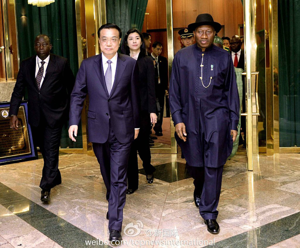 新華網(wǎng)北京5月8日電 據(jù)新華社“新國際”微博報道,李克強7日與尼日利亞總統(tǒng)喬納森會談。喬納森感謝李克強在尼安全形勢嚴(yán)峻的情況下如期到訪,是患難見真情。李克強表示中方將對尼提供各種支持和幫助,同時希望尼方切實加強對在尼中國公民的保護。目前中國在尼有6.5萬人,是我在非人員最多的國家之一。
