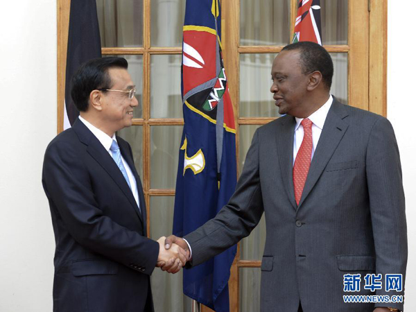 ????肯雅塔代表肯尼亞政府和人民熱烈歡迎李克強訪肯,表示在周恩來總理訪非50周年之際,李克強總理對非洲進行的里程碑式訪問取得圓滿成功,將進一步深化非中新型戰略伙伴關系。肯中有著相同的歷史遭遇和發展任務,肯方感謝中方對肯經濟社會發展和保護生態環境、野生動物資源的幫助和支持,高度贊賞中國為維護非洲和平與發展作出的重要貢獻,完全贊同李克強總理在非盟演講中提出的“461”非中合作框架和在世界經濟論壇非洲峰會特別致辭中提出的合作建設非洲基礎設施“三大網絡”的主張,愿與中方加強戰略溝通,全面推進各領域合作,實現共同發展??戏皆缸鲋袊髽I進入非洲的門戶,為推動非中合作發揮積極作用。