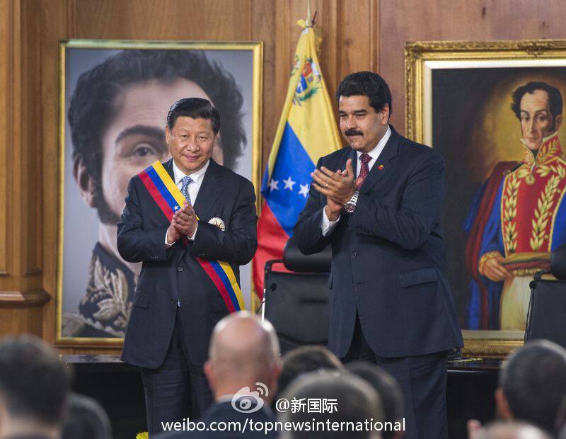 ??? 新華網北京7月21日電 據新華社“新國際”微博報道,習近平20日被委內瑞拉總統馬杜羅授予“解放者”勛章。習近平說,這不僅是給予我個人的榮譽,更體現了總統先生和委內瑞拉政府對中委關系的高度重視。中委友誼必定像南美洲奧里諾科河一樣綿延不絕、生生不息。(王曄攝)