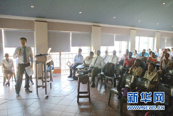 ????中國文化和國際教育交流中心負(fù)責(zé)人、南非漢語推廣委員會委員陸志雷博士介紹漢語教學(xué)情況。新華社記者郭興華 攝