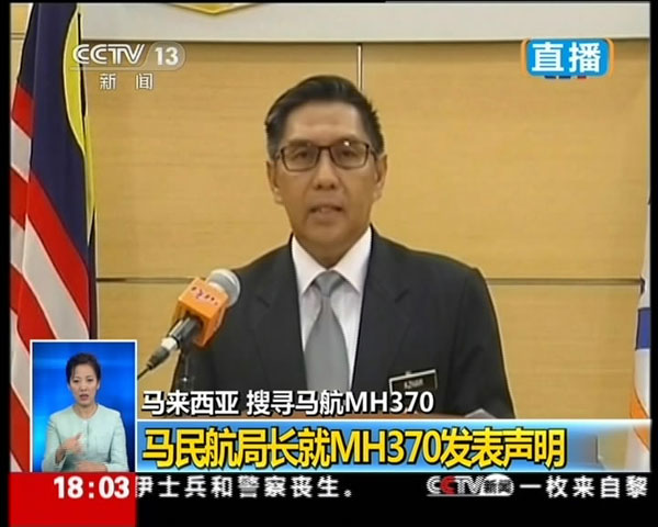 ??? 1月29日,馬來西亞民航局宣布,馬航370航班失事,并推定機上所有239名乘客和機組人員已遇難。這是馬來西亞民航局總監愛茲哈爾丁發表講話的視頻截圖。新華社發