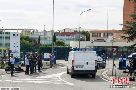 資料圖:當地時間2015年8月1日,法國巴爾馬,在法屬留尼旺島發現的疑似波音777機翼殘骸抵達法國,警衛隊護送運載該殘骸的車輛前往法國南部城市圖盧茲附近的國防部實驗室。