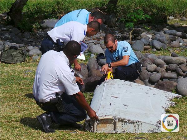 圖為7月29日,在法屬留尼汪島,警察查看一塊飛機殘骸。 新華/路透