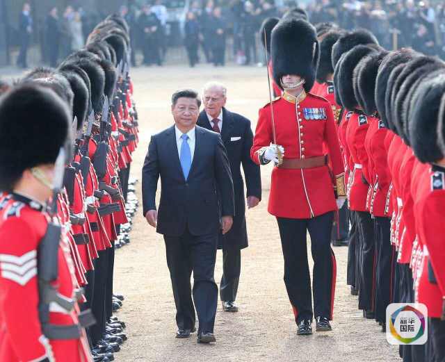 國家主席習近平出席英國女王伊麗莎白二世在倫敦騎兵檢閱場舉行的隆重歡迎儀式。(龐興雷攝)