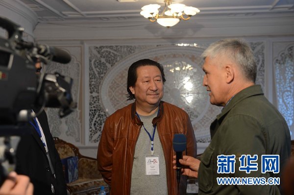 10月27日,烏茲別克斯坦首都塔什干,中國(guó)國(guó)家畫(huà)院院長(zhǎng)楊曉陽(yáng)在接受烏電視臺(tái)采訪。