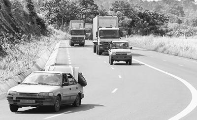 中國企業修建的高速公路穿過剛果(布)原始熱帶雨林。記者 苑基榮攝