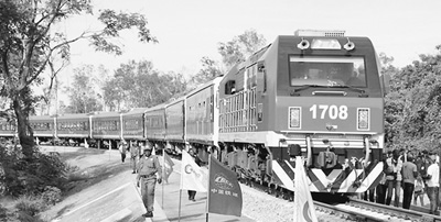 2013年11月28日,安哥拉本格拉鐵路盧埃納至盧奧區間各車站順利驗交。中國鐵建二十局集團供圖