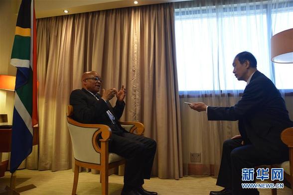 12月6日,南非總統(tǒng)祖馬(左)在南非約翰內(nèi)斯堡接受新華社記者專訪。 “我們非常感謝中國(guó)理解非洲的困難和面臨的挑戰(zhàn),感謝中國(guó)領(lǐng)導(dǎo)人和中國(guó)人民與我們一起并肩面對(duì)。習(xí)近平主席在峰會(huì)上的講話告訴全世界:中國(guó)是我們真正的朋友和伙伴,”南非總統(tǒng)祖馬6日在接受新華社專訪時(shí)說。新華社記者趙熙攝