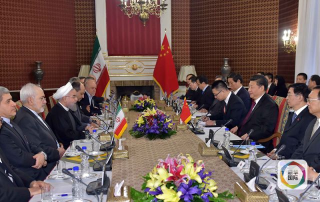 1月23日,國家主席習近平在德黑蘭薩德阿巴德王宮同伊朗總統魯哈尼舉行會談。(新華社記者李濤攝)