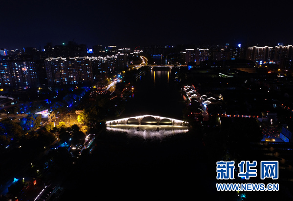 航拍杭州西湖文化廣場(chǎng)附近的京杭大運(yùn)河夜景(5月4日攝)。杭州自古多橋。斷橋、長(zhǎng)橋、錢塘江大橋、復(fù)興大橋……古樸文雅輝映現(xiàn)代氣派,透出這座城市融匯古今、靈動(dòng)開放的底蘊(yùn)。舉世矚目的二十國(guó)集團(tuán)(G20)領(lǐng)導(dǎo)人第十一次峰會(huì)將在這里舉行。有趣的是,這次峰會(huì)的會(huì)標(biāo),也是一座橋——一座由20個(gè)成員搭起的“橋”。這會(huì)是一座怎樣的橋?它能否緩解當(dāng)前全球經(jīng)貿(mào)河道上的種種淤塞?它能否跨越發(fā)達(dá)國(guó)家和發(fā)展中國(guó)家之間的溝溝壑壑? 全球在期待,中國(guó)在行動(dòng)。新華社記者黃宗治攝