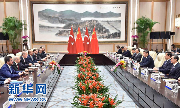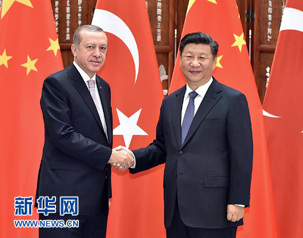 9月3日,國(guó)家主席習(xí)近平在杭州會(huì)見來華出席二十國(guó)集團(tuán)領(lǐng)導(dǎo)人杭州峰會(huì)的土耳其總統(tǒng)埃爾多安。 新華社記者 李濤 攝
