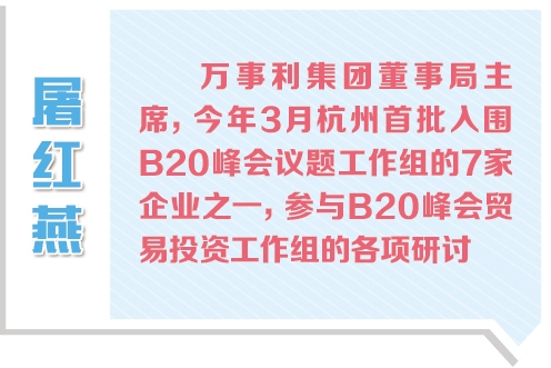 屠紅燕說,中國企業在“走出去”的過程中代表的不僅是自己,更代表中國形象。此次,站在家門口的B20峰會講臺上,中國企業希望能站在全球高度參與國際規則制定,“走出去”能有更公平、便利的政策環境。