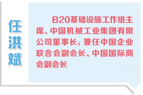 B20基礎(chǔ)設(shè)施工作組主席、中國(guó)機(jī)械工業(yè)集團(tuán)有限公司董事長(zhǎng)任洪斌接受《經(jīng)濟(jì)日?qǐng)?bào)》記者采訪時(shí)表示,基礎(chǔ)設(shè)施工作組向二十國(guó)集團(tuán)(G20)峰會(huì)提交了5條建議,以積極推動(dòng)基礎(chǔ)設(shè)施建設(shè),縮小基建投資缺口。