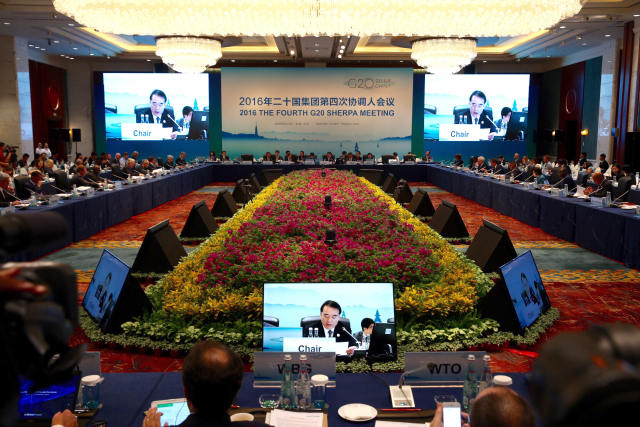 圖為9月1日,2016年二十國集團第四次協(xié)調人會議在浙江杭州舉行。 (新華社記者金立旺攝 )