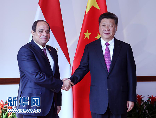 習近平強調,中方高度重視中埃關系。我們堅定支持埃及維護國家穩定,自主探索符合本國國情的發展道路,愿同埃方繼續在涉及彼此核心關切的問題上相互支持。要將兩國經貿合作落到實處,推動重點合作項目早日實施,加強產能、金融、民生、環保、基礎設施領域合作,密切在國際和地區事務中的協調和配合。雙方要以兩國建交60周年為新起點,推動中埃關系不斷得到新的更大發展。