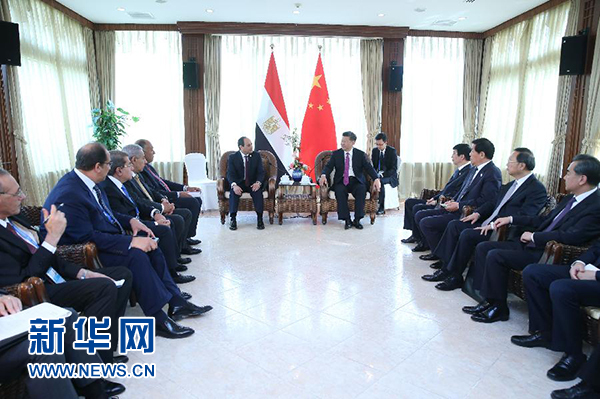 9月4日,國家主席習近平在杭州會見在華出席二十國集團領導人杭州峰會的埃及總統塞西。 新華社記者 姚大偉 攝