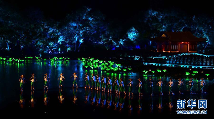9月4日,演員在表演《采茶舞曲》。當(dāng)日,出席二十國集團(tuán)領(lǐng)導(dǎo)人杭州峰會的G20成員和嘉賓國領(lǐng)導(dǎo)人及有關(guān)國際組織負(fù)責(zé)人在杭州西湖景區(qū)觀看《最憶是杭州》實(shí)景演出交響音樂會。新華社記者 張鐸 攝