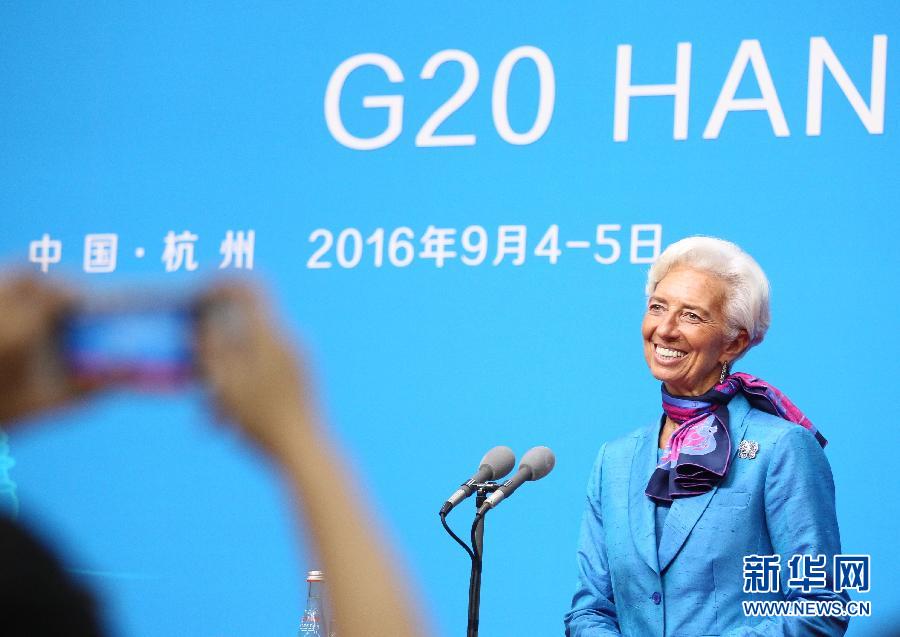 9月5日,國際貨幣基金組織總裁拉加德在二十國集團(G20)杭州峰會新聞中心舉行新聞發布會。 新華社記者劉穎攝