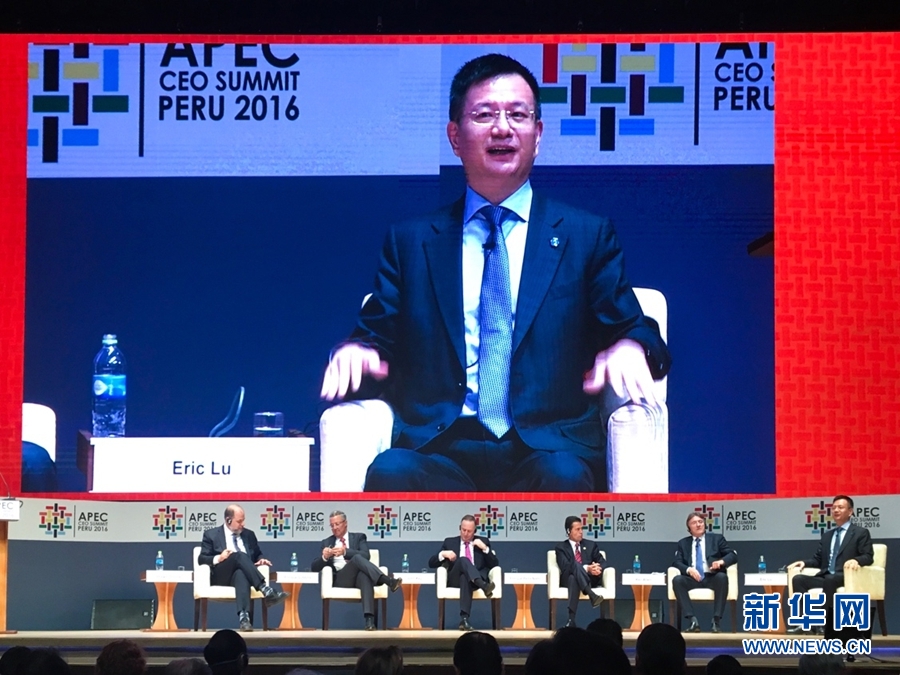 ????當地時間11月19日,APEC工商領導人峰會舉行主題為“重新設計貿易”的現場討論會。圖為聚貿電子商務有限公司董事長陸宏翔在討論會上發(fā)言。