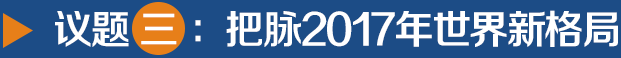• 2016年的“黑天鵝”事件——英國脫歐、特朗普當選美國總統等,將在2017年繼續發酵。特朗普的美國優先政策等必將深刻影響未來一個時期的國家間關系和世界格局。中國將如何應對呢?一是保持淡定,沉著應對,始終堅持以經濟建設為中心;二是守住底線,不惹事,但也不怕事。我們的底線是在臺灣問題上要維護國家的統一大業,在島嶼主權問題上絕對不能丟失一個島嶼。[詳情]