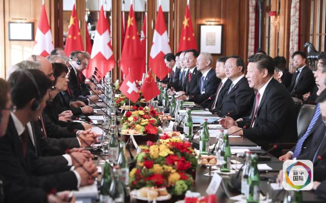 1月16日,國家主席習(xí)近平在伯爾尼同瑞士聯(lián)邦主席洛伊特哈德舉行會談。(新華社記者蘭紅光攝)