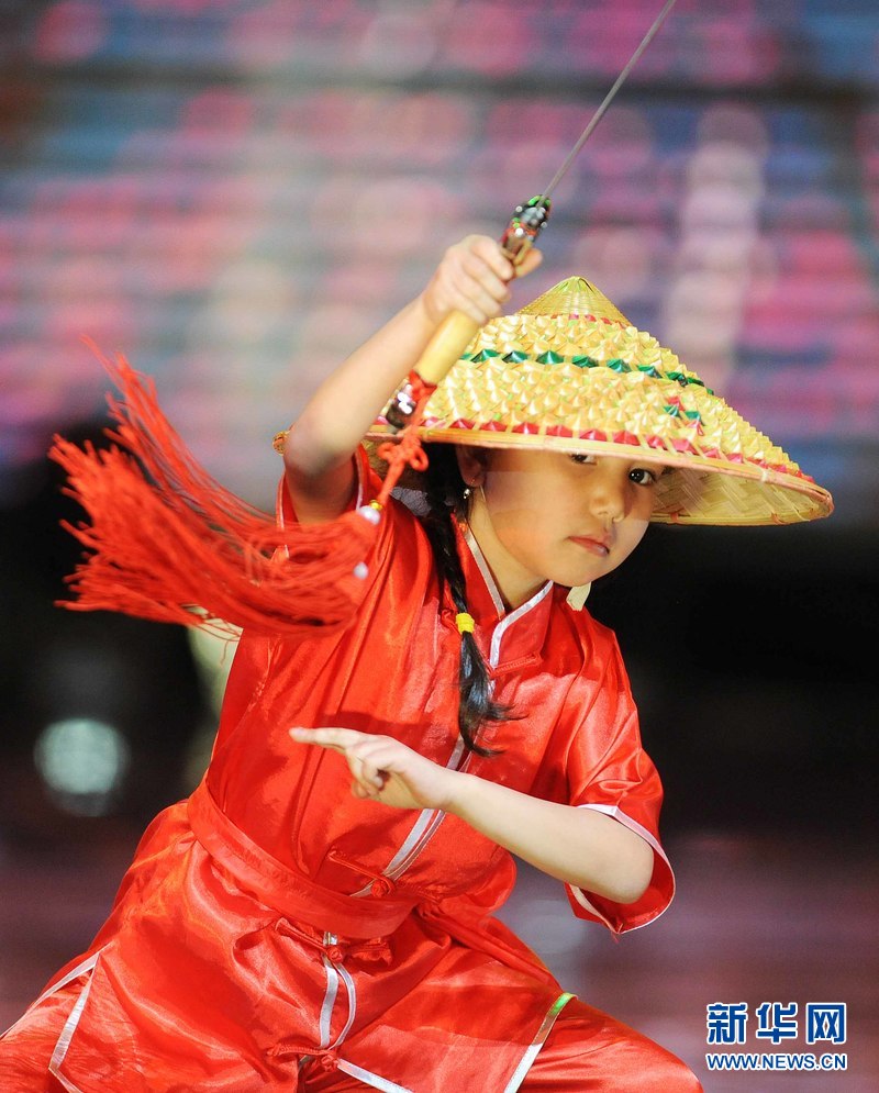 1月18日晚,烏茲別克斯坦首都塔什干人民友誼宮,烏茲別克斯坦中華民族文化中心武術(shù)隊(duì)隊(duì)員在表演武術(shù)。
