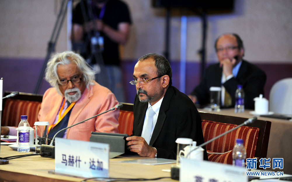 金磚國家媒體高端論壇開幕式6月8日在北京舉行。圖為論壇共同主席、印度教徒報集團總編輯穆昆德·帕德馬納班發(fā)表演講。 新華網(wǎng) 孫韜 攝