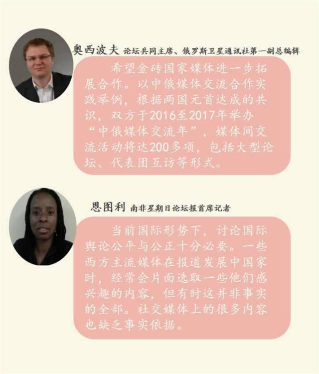 與會代表對提升金磚國家話語權有哪些構想?未來將如何開展合作?將如何順應信息傳播新形勢?一起聽聽他們怎么說!