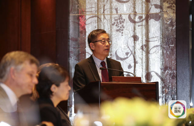 圖為5月19日,在美國(guó)紐約,中國(guó)投資有限責(zé)任公司(中投公司)總經(jīng)理屠光紹在紐約代表處開(kāi)業(yè)儀式暨投資研討會(huì)上致辭。 (新華社發(fā))