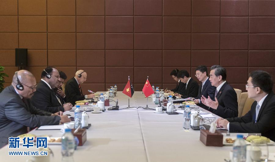 11月11日,外交部長王毅在越南峴港應約會見巴布亞新幾內亞外長帕托。 新華社記者 費茂華 攝