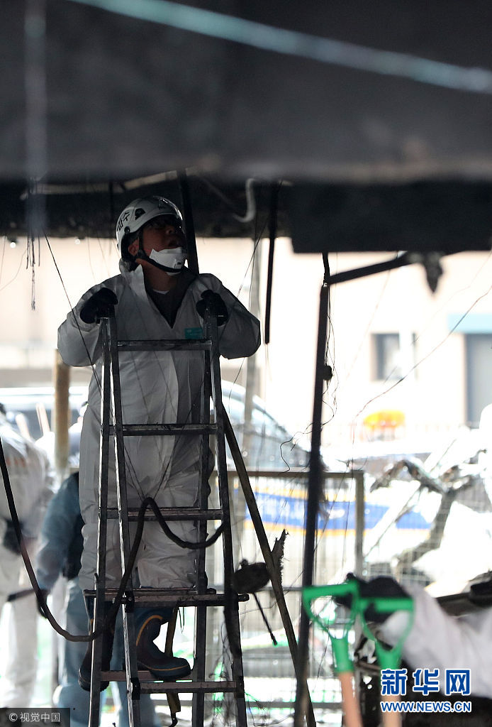 當地時間2017年12月23日,火災現場。21日發生在韓國忠清北道堤川市一運動中心的火災已造成29人,
