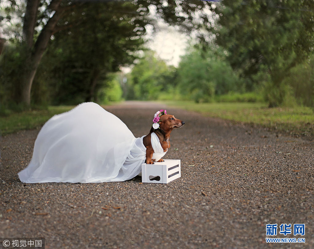 2016年6月12日消息(具體拍攝時間不詳),美國德克薩斯州麥卡倫市,商業攝影師Belinda Schenk為一對臘腸犬和他們剛出生的6只寶寶拍了一組別出心裁的唯美寫真。(圖片來源:視覺中國)