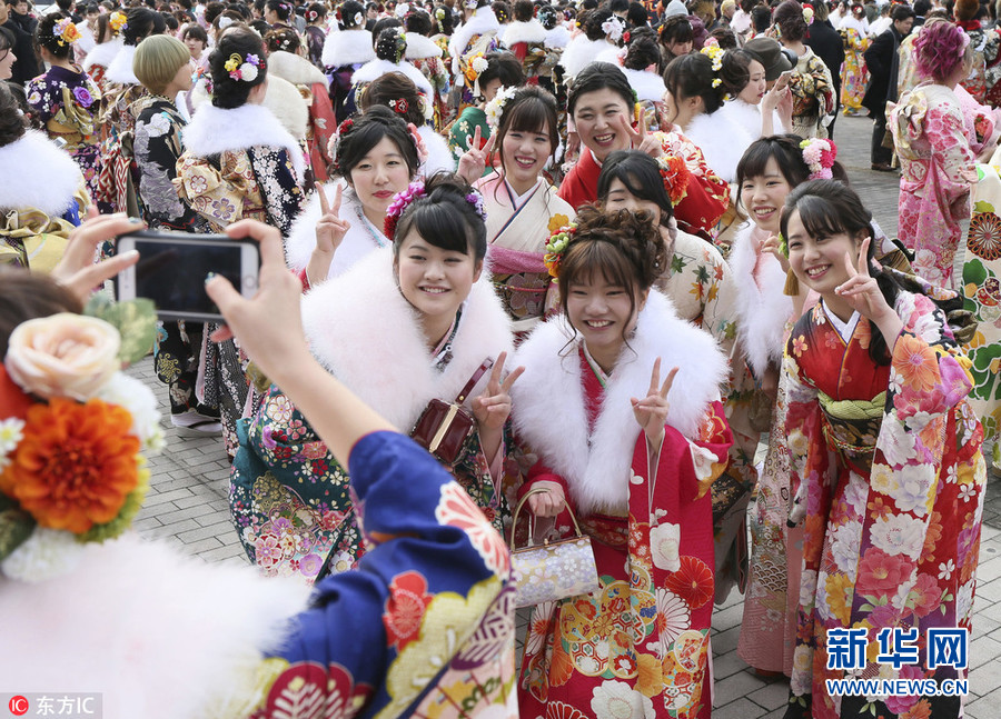 日本和服妹子出席“成人節(jié)”慶祝儀式 開(kāi)心玩自拍