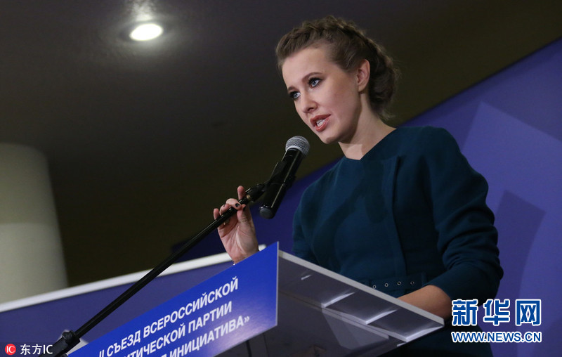 【謝尼婭·索布恰克:我是動真格】2017年12月23日,俄羅斯莫斯科,俄電視臺主持人、總統候選人克謝尼婭·索布恰克出席競選活動。索布恰克家族與普京有很深的淵源。外界稱索布恰克為普京“導師”之女。