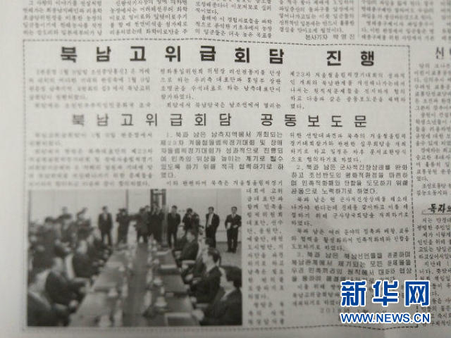 文章前一部分是對會談情況的簡單介紹,后一部分直接發布了朝韓高級別會談聯合新聞公報的內容。