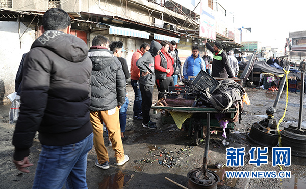 1月15日,在伊拉克首都巴格達,人們聚集在爆炸現(xiàn)場附近。 新華社發(fā)(哈利勒·達伍德攝)