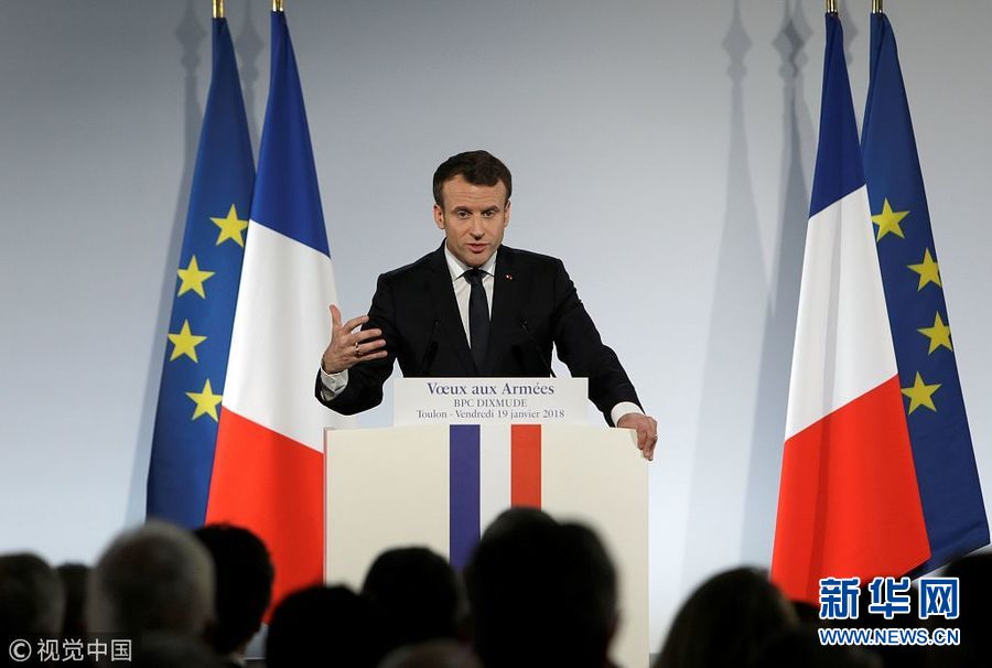 1月19日,法國土倫,法國總統馬克龍視察了當地的海軍基地并向士兵們發表新年祝福。(圖片來源:視覺中國)
